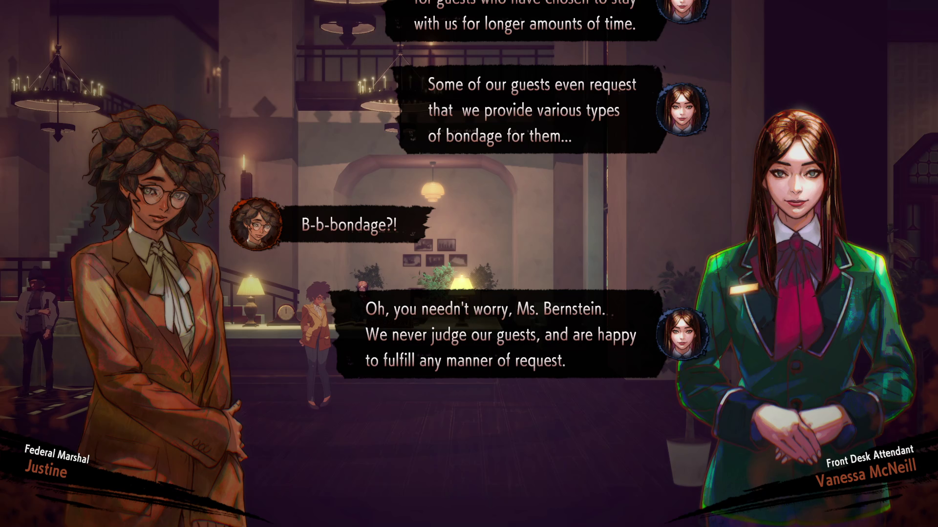 The voice acting performances are consistently strong, breathing considerable life and personality into the fantastic cast of characters that populate the hotel. This vocal talent goes a long way in making the brilliant storytelling even more captivating, anchoring the bizarre personalities with credible and engaging delivery.